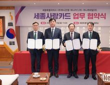 뉴스다 최광묵 기자 | 세종특별자치시가 ㈜하나은행(부행장 이동열), 하나카드㈜(대표이사 성영수), 하나캐피탈㈜(대표이사 김용석)와 손잡고 ‘세종사랑카드’를 새롭게 선보인다. 시는 9일 세종시청 세종실에서 ‘세종사랑카드’ 기반 금융 혜택 제공 및 지역경제 활성화를 위한 상호 협력 협약을 체결했다고 밝혔다. 이번 협약은 세종사랑카드 출시를 통해 시민 맞춤형 혜택 제공 체계를 구축하고 카드 이용 실적 등을 토대로 금융기관과 협력해 조성된 재원을 지역경제 활성화 사업에 연계하기 위해 추진됐다. 협약에 따라 이들 기관은 ▲세종시민 맞춤형 혜택 제공 ▲카드 이용 실적 등에 따른 기금 조성 ▲조성 재원의 소상공인 지원사업 연계 ▲세종시민을 위한 공동 협력사업 발굴 등에 나설 예정이다. 특히 하나은행을 비롯한 하나금융그룹에서는 세종사랑카드 사용 금액의 0.1%와 시민이 카드결제 계좌로 지정한 통장의 연 평균 잔액 0.1%에 해당하는 금액을 출연해 별도의 기금을 조성한다. 이렇게 조성된 기금은 소상공인 경영안정 지원 등 지역 경제에 실질적인 도움으로 돌아갈 수 있는 재원으로 활용된다.