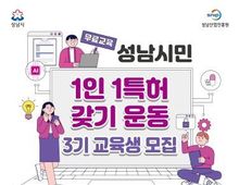 뉴스다 최광묵 기자 | 성남산업진흥원은 시민의 창의적인 아이디어를 지식재산으로 보호하고 창업으로 연결하기 위해 '성남시민 1인 1특허 갖기 운동' 제3기 교육생을 모집한다고 밝혔다. ‘성남시민 1인 1특허 갖기 운동’은 성남시민 누구나 참여할 수 있는 지식재산 교육 프로그램으로, 아이디어 발굴부터 권리화까지 전 과정을 지원하는 시민 참여형 지식재산 프로그램이다. 해당 과정에서는 특허 기초 교육, 아이디어 고도화, 변리사 상담, 출원 절차 안내 등 지식재산 창출에 필요한 실무 과정을 체계적으로 제공한다. 이 프로그램은 2025년 처음 시작되어 연 2회 기수로 운영되고 있으며, 올해는 상반기 제3기 교육생 모집을 시작으로 하반기 제4기 과정도 운영될 예정이다. 지난 2025년에는 상·하반기 교육을 통해 총 209명의 시민이 참여하고 183명이 교육을 수료해 수료율 88%를 기록했다. 교육 이후 특허·상표·디자인 등 지식재산권 72건이 창출됐으며, 이는 교육생 3명 중 1명 이상이 실제 지식재산 창출 성과를 낸 수준이다. 이번 3기 교육생 모집은 3월 9일부터 3월 27일까지 진행되며 강