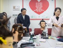 뉴스다 최광묵 기자 | 경기도교육청평생학습관이 26일 화성나래학교 학부모를 대상으로 미용기술 실습 과정인 ‘가위소리 나눔교실’을 운영했다. ‘가위소리 나눔교실’은 평소 미용실에 방문하기 어려운 특수교육대상학생의 두발 관리를 위해 학부모가 가정에서 활용할 수 있는 미용기술을 습득할 수 있도록 지원하는 과정으로 미용 전문 강사가 직접 특수학교를 찾아가 미용 이론 및 실습 교육을 진행하고 있다. 이날은 화성나래학교 학부모 15명이 수업에 참여하고 임태희 경기도교육감이 수업을 참관했다. 임태희 교육감은 “특수교육이 직업으로 연결될 수 있도록 하기 위해서는 사회적 협조가 필요하다”며 “특수교육 현장을 선진국 수준으로 올려 놓아야한다”고 말했다. 임 교육감은 “특수교육 아이들이 고등학교까지 마친 후에 대학에 갈수 있으면 좋지만 그렇지 못한 학생들은 다시 가정으로 돌아가 가정에서 모든 걸 감당해야한다”며 “특수교육 아이들을 직업과 연결할 수 있는 방안을 찾아야한다”고 강조했다. 경기도교육청평생학습관은 올해 특수학교 8개교 학부모를 대상으로 생활미용 프로그램을 운영중에 있다. 경기도교