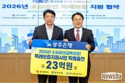 뉴스다 최광묵 기자 | 광주은행은 22일 광주광역시청에서 강기정 광주광역시장, 정일선 광주은행장, 염규송 광주신용보증재단 이사장 및 관계자가 참석한 가운데 ‘2026년 소상공인 특례보증 대출 지원사업 협약’을 체결했다고 밝혔다. 이번 협약을 통해 광주은행은 고금리와 경기침체 등으로 어려움을 겪는 광주지역 소상공인(골목상권)에 대한 금융지원 확대를 위해 23억 원을 특별출연했다. 이를 재원으로 광주신용보증재단은 총 466억 원 규모의 특례보증을 지원하며, 광주광역시는 1년간 3~4%의 이차보전을 지원할 계획이다. 소상공인 특례보증 융자 지원 대상은 유흥·도박·사행성 업종 등 일부 업종을 제외한 광주지역 소재 소기업·소상공인·자영업자 전 업종이며, 업체당 최대 5천만 원까지 지원받을 수 있다. 대출 기간은 7년 이내다. 보증 신청은 오는 26일부터 광주은행 ‘Wa뱅크’ 앱과 광주신용보증재단 ‘보증드림’ 앱을 통한 비대면 방식으로 가능하다. 비대면 신청이 어려운 경우에는 광주신용보증재단 영업점을 방문해 대면 신청도 가능하다. 한편 광주은행은 2020년부터 현재까지 광주광역시 소상공인(골목상권)을 위해