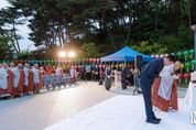 뉴스다 최광묵 기자 | 합천군과 합천군불교연합회에서는 불기 2570년 부처님 오신 날을 맞이하여, 4월 29일 합천 대야성역사테마공원에서 합천군민 300여명이 참석한 가운데 ‘봉축 점등식’을 성황리에 개최했다. 합천군불교연합회가 주최한 이번 행사는 부처님의 자비와 광명의 불빛으로 시민들의 마음에 평안을 주고 화합과 안녕을 기원하기 위해 마련됐으며, 해인사 주지스님과 내빈, 군민 등 400명이 참석해 부처님 오신 뜻을 함께 기렸다. 행사는 삼귀의 및 반야심경 봉독, 해인사 주지 혜일 큰스님의 법문, 축사 순으로 경건하게 치러졌다. 이어 주요 내빈들이 함께 광장의 연등에 불을 밝히는 ‘점등식’과 전 참석자가 탑 주위를 도는 ‘탑돌이’가 진행되며 행사의 대미를 장식했다. 해인사 혜일 큰스님은 법문을 통해 “부처님의 인연 연기법에 따라 남을 도우며 착한 일을 하면 선한 과을 받을 것이며 남을 미워하고 시기하면 다툼과 전쟁이 오기 마련이다. 개인과 사회, 세계의 여러 나라가 미워함을 끝내고 평화와 번영으로 다함께 행복해지기를 기원한다”고 밝혔다. 합천군불교연합회 진각스님은 봉행사를 통해 “오