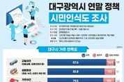 뉴스다 최광묵 기자 | 대구광역시는 지난해 11월 27일부터 12월 3일까지 만 18세 이상 대구시민 1,001명을 대상으로 시정 전반에 대한 ‘시민인식도 조사’를 실시했다. 이번 조사는 시민들의 다양한 의견을 파악해 향후 시정 운영과 주요 정책 수립에 활용하기 위한 것으로, ▲대구시 거주 만족도 ▲대구시가 역점 추진해야 할 분야 및 핵심사업 우선순위 ▲재정운영 대책 ▲시정 성과 만족도 등을 중심으로 조사했다. 주요 결과는 다음과 같다. 먼저, 대구시 거주 만족도와 관련해 교통, 교육, 생활물가, 거주여건, 경제여건, 문화체육관광 여건, 생활환경 등 시민 삶의 질과 관련된 7개 분야 만족도를 조사한 결과, 교통여건(87.6%), 생활환경(81.8%), 거주여건(79.5%) 등은 높은 만족도를 보였다. 반면 경제여건은 불만족 비율이 62.9%로, 조사 항목 중 유일하게 부정응답이 많았다. 이는 시민들이 일상생활 인프라에 대해서는 전반적으로 만족하고 있지만, 경제 상황은 어렵다고 인식하는 이중적 구조를 보여주고 있다. 다음으로, 향후 역점 추진분야 및 핵심사업에서는 대구시