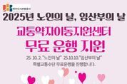 뉴스다 최광묵 기자 | 파주도시관광공사 교통약자이동지원센터는 10월 2일 “노인의 날”과 10월 10일 “임산부의 날”을 맞이하여 특별교통수단 무료 운행 서비스를 진행한다고 밝혔다. “노인의 날”은 센터에 등록된 이용자 중 만 65세 이상을 대상으로 하며, “임산부의 날”은 센터에 등록된 임산부를 대상으로 무료 운행을 지원한다. 이용 방법은 기존 배차 접수 방식과 동일하며, 해당 기념일인 00:00~24:00에 콜센터에 접수된 배차건에 한하여 무료로 이용할 수 있다. 공사 조동칠 사장은 “교통약자이동지원 서비스는 단순한 교통수단 제공을 넘어 사회적 가치 실현에 기여하고 있다”며, “앞으로도 다양한 기념일을 연계한 사회공헌 활동을 추진해 교통약자의 권익 증진과 행복하고 안전한 이동 환경 조성에 힘쓸 계획이다.”라고 전했다.