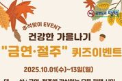 뉴스다 최광묵 기자 | 평택시 송탄보건소에서 오는 10월 1일부터 13일까지 시민 누구나 참여할 수 있는 ‘건강한 가을나기 금연·절주 퀴즈 이벤트’를 진행한다. 이번 퀴즈 이벤트는 정보무늬(QR코드)를 활용 간편하게 참여할 수 있으며 금연·절주의 필요성과 건강관리 정보를 흥미로운 퀴즈 형식으로 접할 수 있도록 기획됐다. 퀴즈를 완료한 참여자 중 정답자 100명을 추첨해 금연 홍보물(보조배터리)을 증정하며 당첨자는 10월 15일 개별 문자로 안내된다. 상품은 10월 16일부터 22일까지 송탄보건소 1층 헬스케어상담센터 내 금연클리닉에서 수령할 수 있다. 송탄보건소 관계자는 “모든 시민이 금연과 절주의 필요성을 이해하고 건강한 생활을 실천하는 계기가 되길 바란다”라고 전했다.