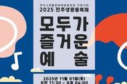 뉴스다 최광묵 기자 | 전주시는 오는 11월 1일 오전 11시, 전주 남중학교 운동장에서 ‘2025 전주 생활문화예술동호회 축제’를 개최한다. ‘생활문화예술동호회’란 전문 예술인이 아닌 일반 시민들이 여가나 취미활동을 통해 자발적으로 모여 예술을 즐기고 창작활동을 이어가는 순수 아마추어 예술 모임으로, 지역 주민의 문화 향유 기회를 넓히고 일상 속 예술 문화를 확산하는 데 중요한 역할을 하고 있다. 이번 행사는 올 한 해 다양한 분야에서 활발히 활동해 온 전주시 생활문화예술동호회 회원들이 전시와 체험, 공연 등 다채로운 프로그램을 선보이며 시민과 소통하는 자리로 꾸며질 예정이다. 구체적으로 축제 현장에서는 △회화·공예·사진 등 회원 작품 전시(5팀) △공예 체험과 시민 참여형 프로그램(8팀) △생활문화센터의 기획체험(3팀) △왼손 그림 그리기와 행복사진관 등 체험 부스가 운영된다. 또한 음악과 무용, 밴드 등 12개 팀의 공연 무대가 이어져 시민들이 일상 속 예술을 가까이에서 즐길 수 있는 시간을 선사한다. 특히 올해 축제의 주제는 ‘모두가 즐거운 예술’로, 취미와 창작활동을 통해